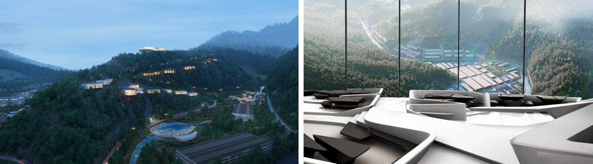 山顶的高端展示中心,以“展望白酒的未来,在超越现实建筑中眺望白酒的明天”为主题,传播高端白酒文化。